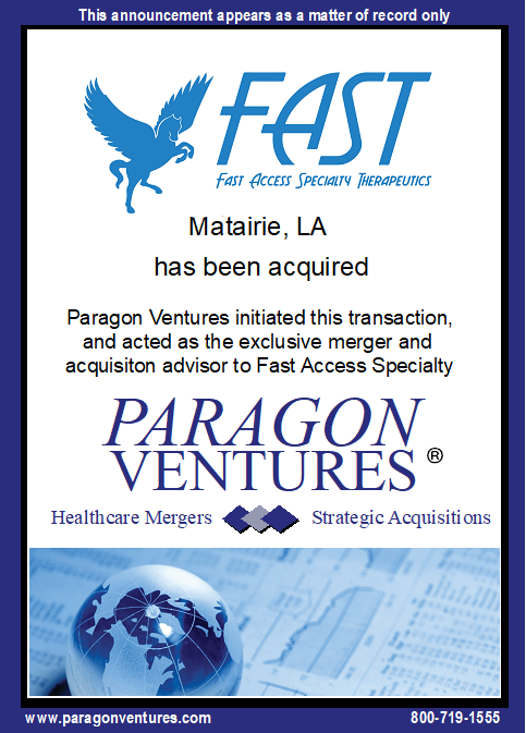 Paragon Ventures is pleased to announce the sale of its client, Fast Access Specialty Therapeutics